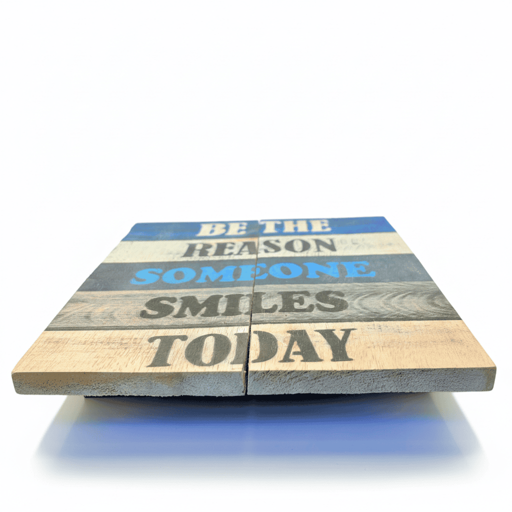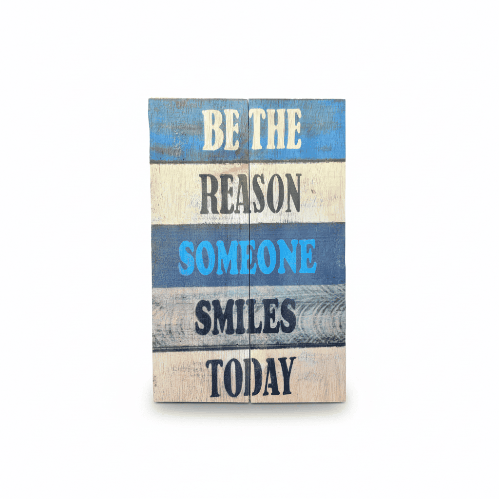 Add a meaningful touch to your home with our beautifully handcrafted “Be The Reason Someone Smiles Today” wooden wall plaque. Designed to inspire positivity and kindness, this charming piece brings warmth and character to any living space. Made from natural wood and finished with a distressed rustic look, this plaque blends effortlessly with farmhouse, country, coastal and modern rustic interiors. Each piece is individually handcrafted, making every sign unique with its own natural grain and texture.