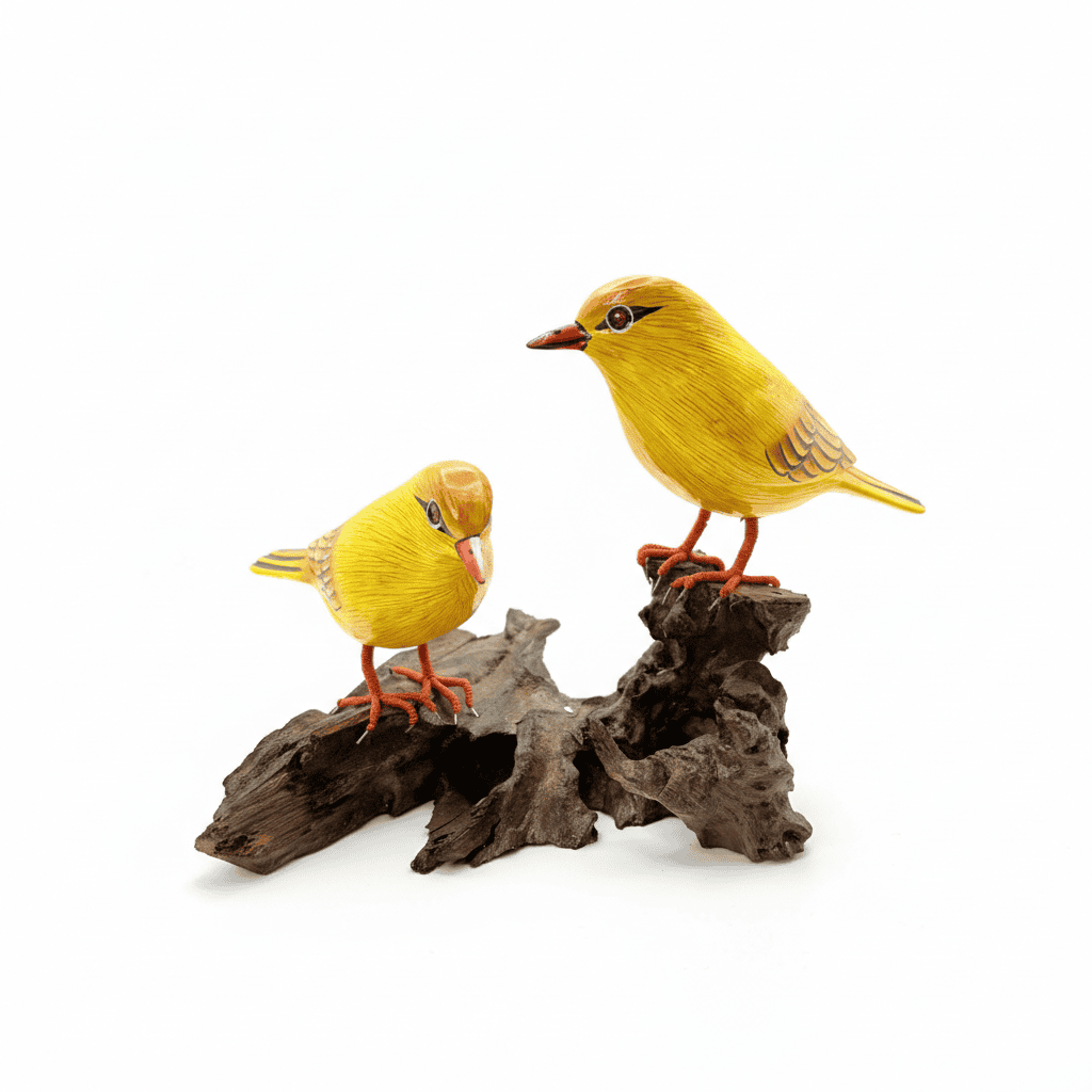 Bring warmth and natural elegance into your home with this beautifully handcrafted Golden Oriole Couple wooden sculpture. Featuring two vibrant yellow orioles perched on natural driftwood, this piece symbolises love, harmony, and togetherness.