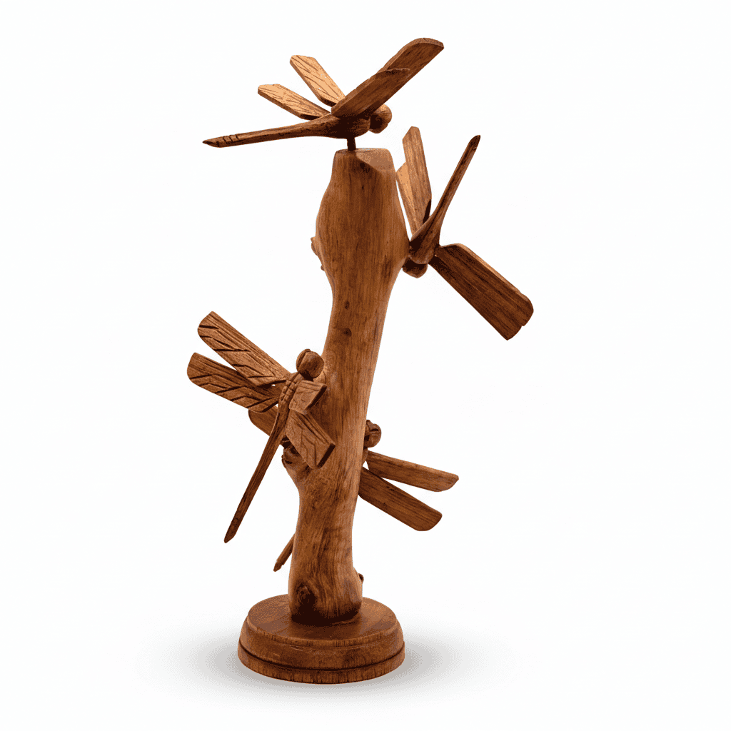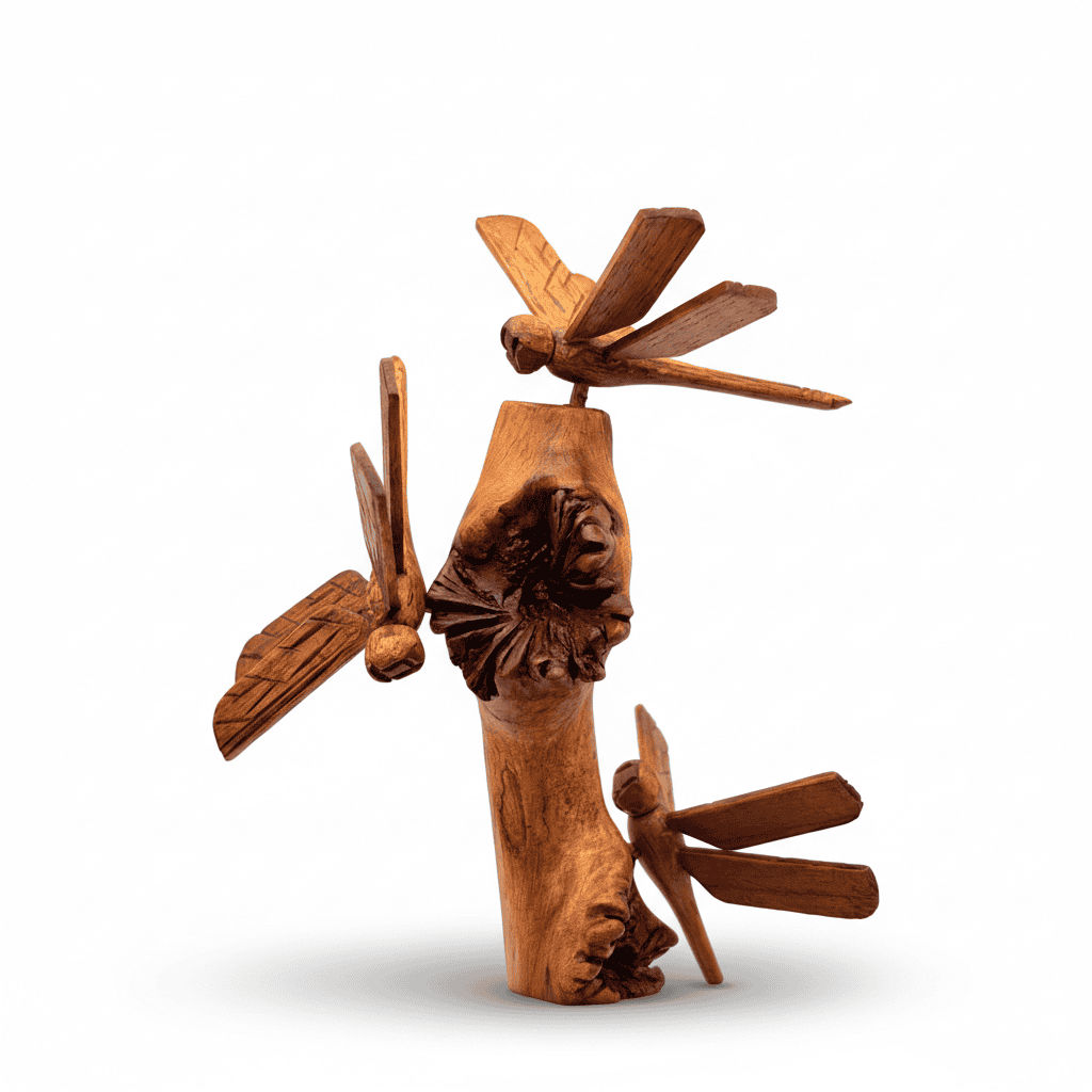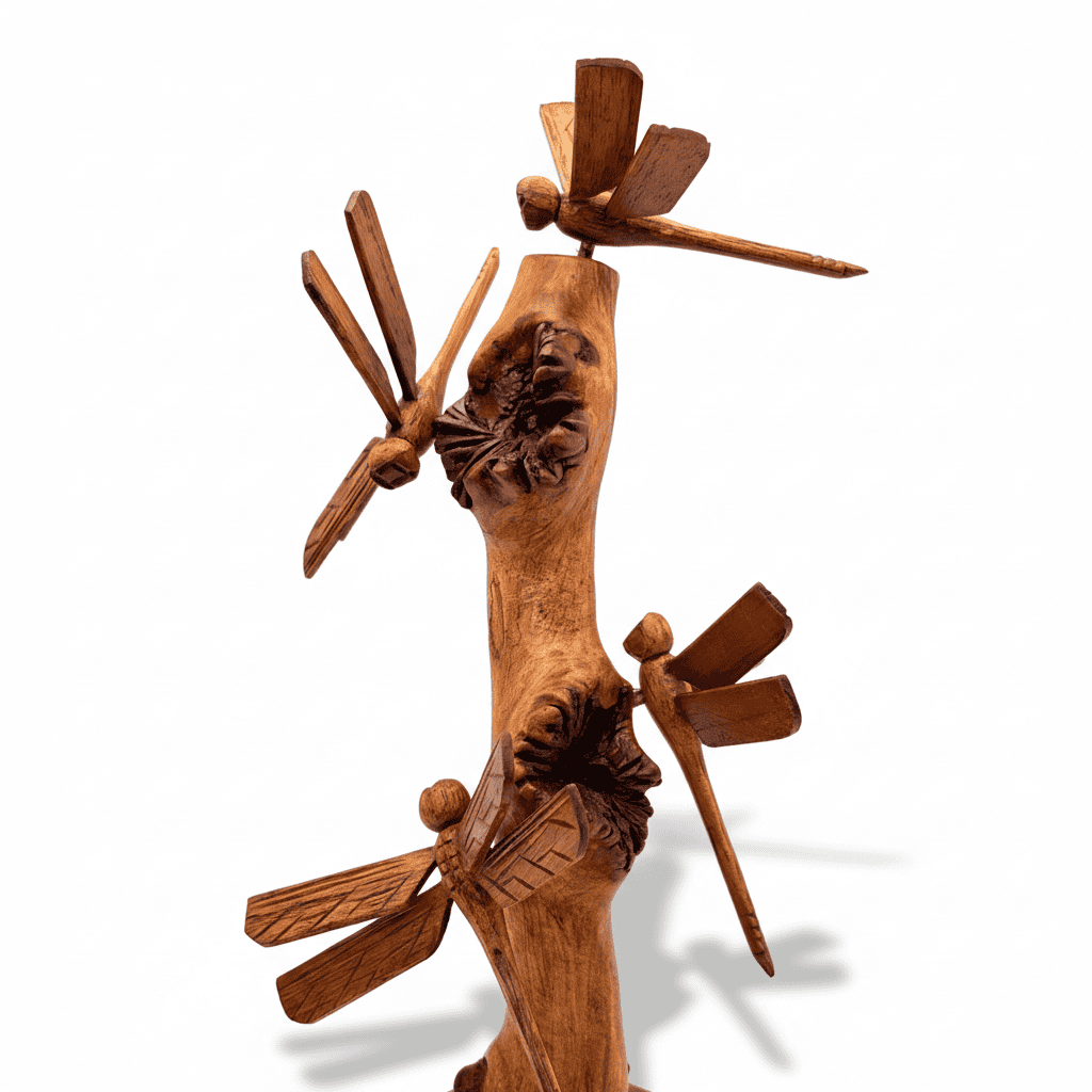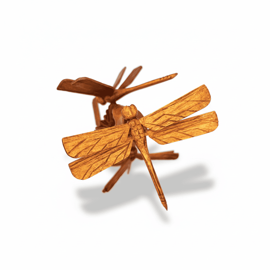 Hand-Carved Wooden Dragonfly Sculpture – Forest Dancers