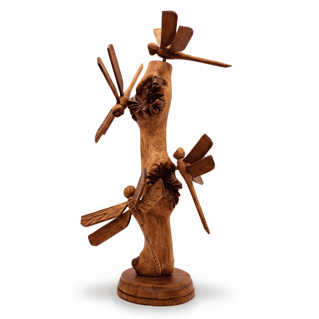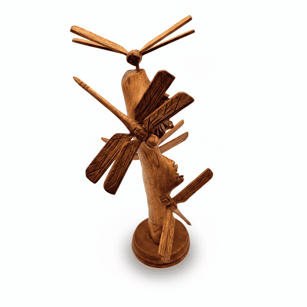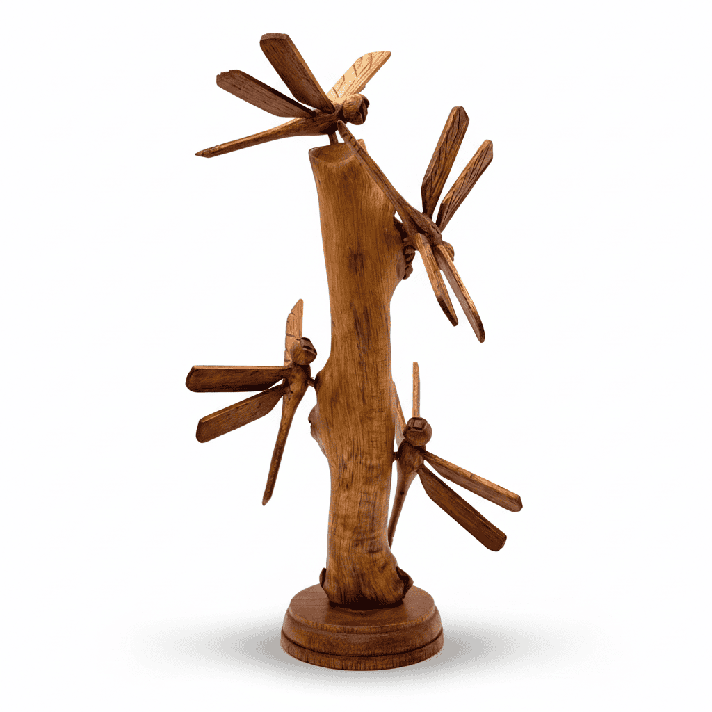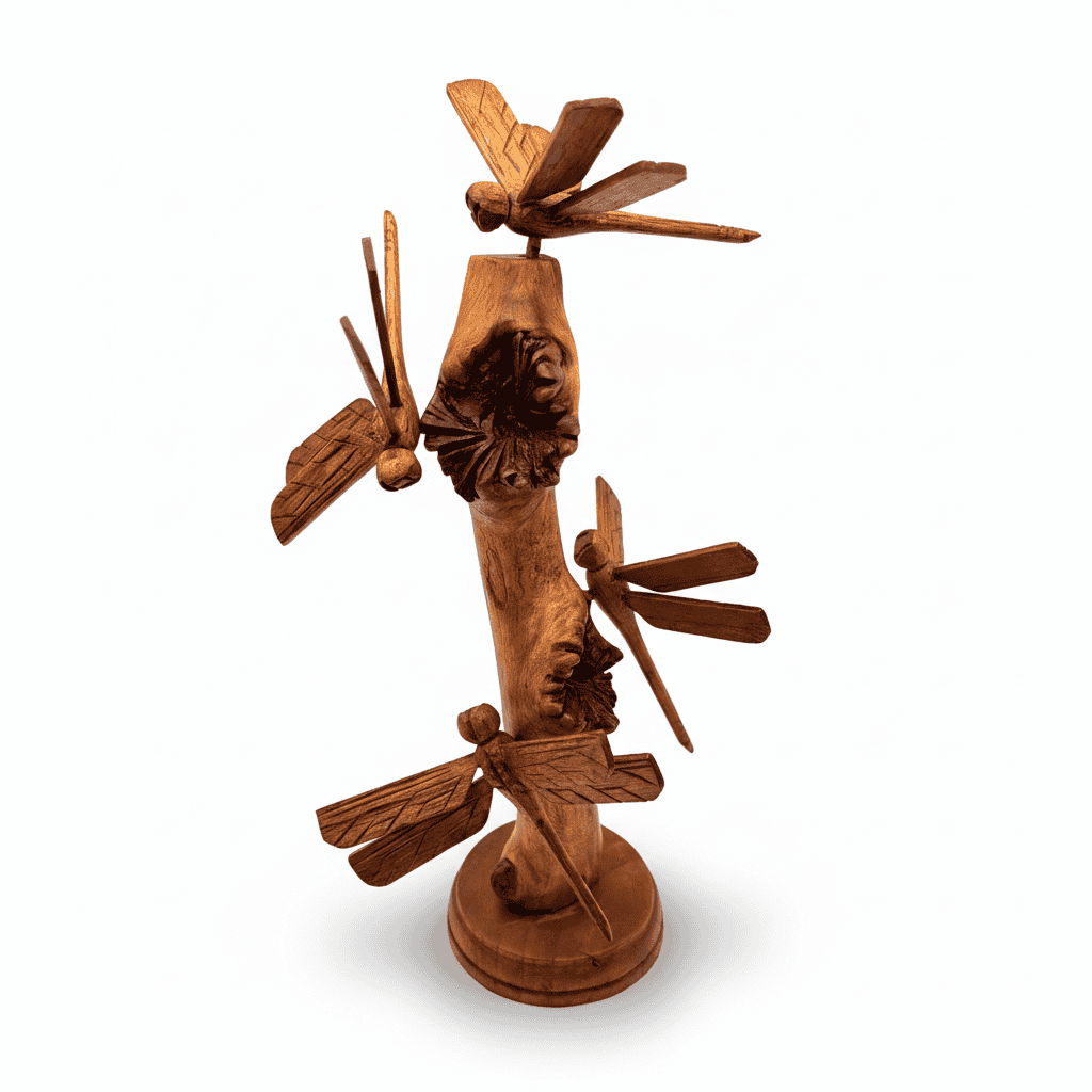 Hand-Carved Wooden Dragonfly Sculpture – Forest Dancers